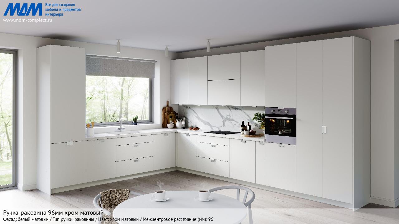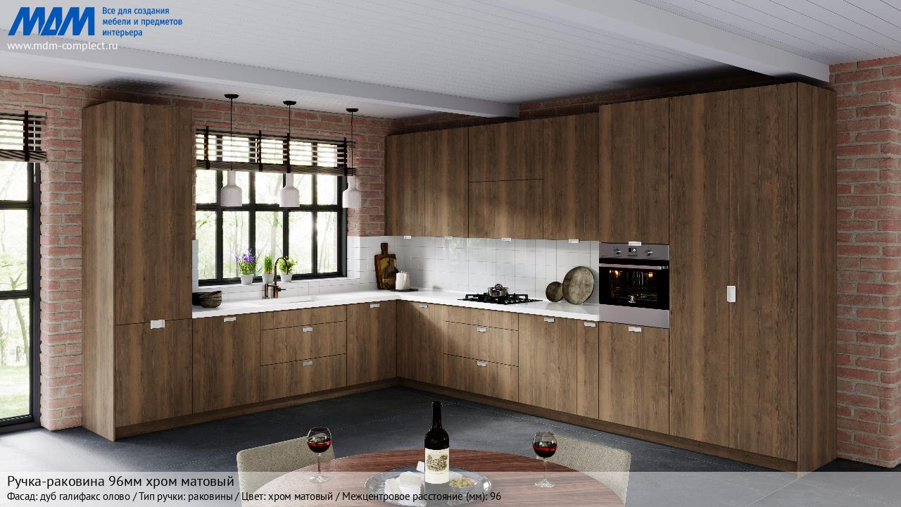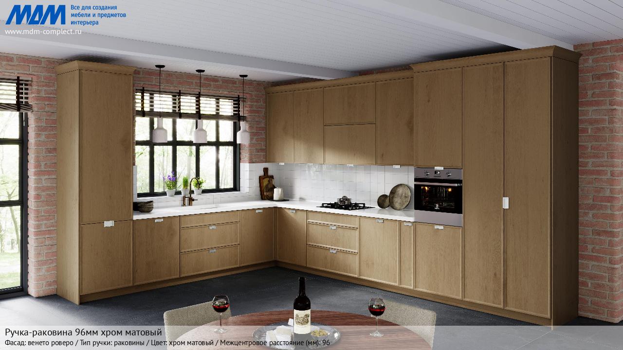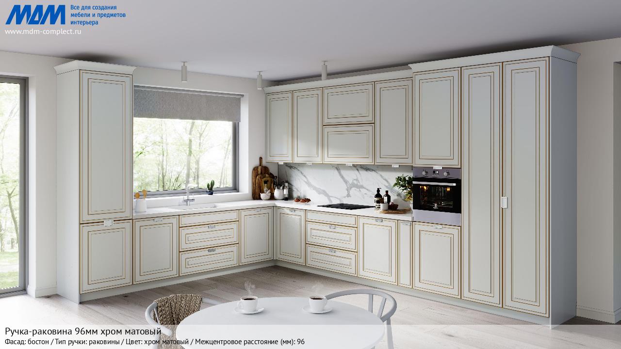 Мебельная Ручка-раковина 96мм хром матовый на различных фасадах в кухонном интерьере в стиле классика, лофт, модерн.