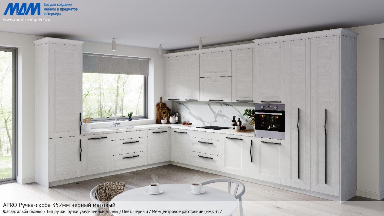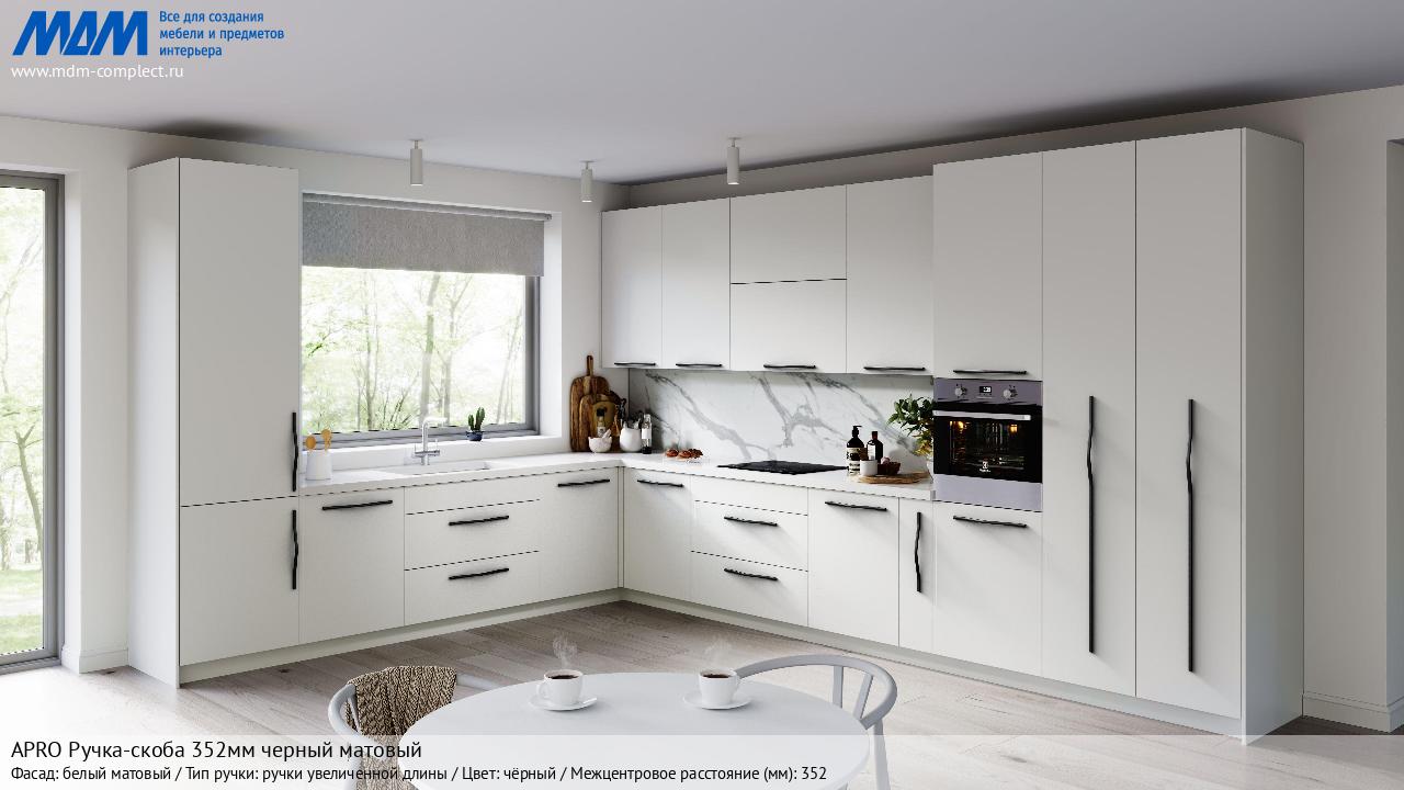 APRO Ручка-скоба 352мм черный матовый (C-5769-394/352.P61 RU) в готовой кухне на различных фасадах