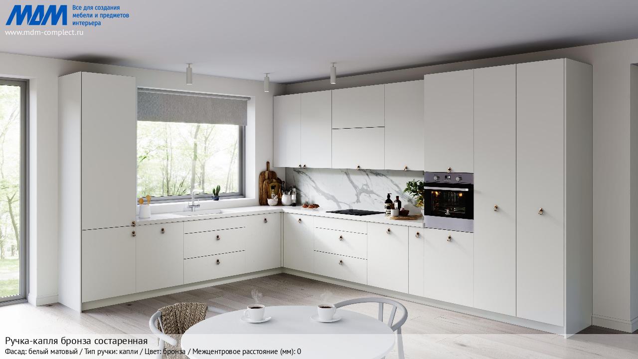 Ручка-капля бронза состаренная (KH.33.ABV) в готовой кухне на различных фасадах