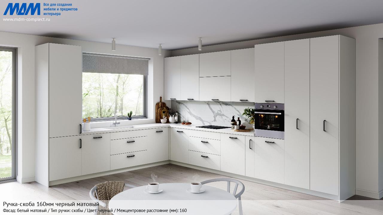 Ручка-скоба 160мм черный матовый (BH.55.160.BLM) в готовой кухне на различных фасадах