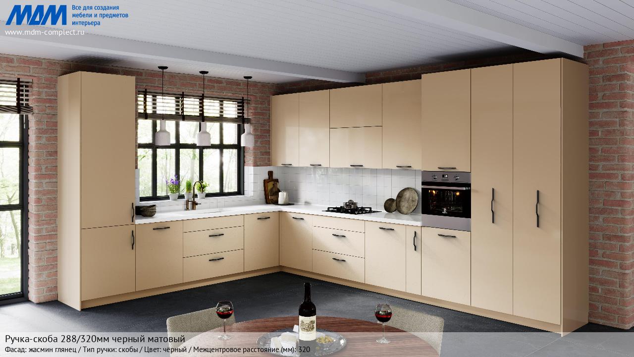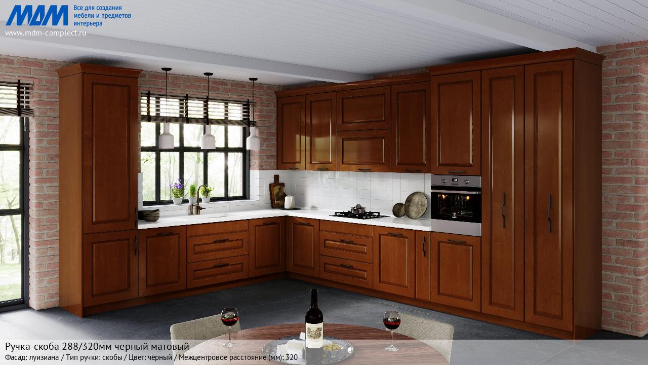 Мебельная Ручка-скоба 288/320мм черный матовый на различных фасадах в кухонном интерьере в стиле классика, лофт, модерн.