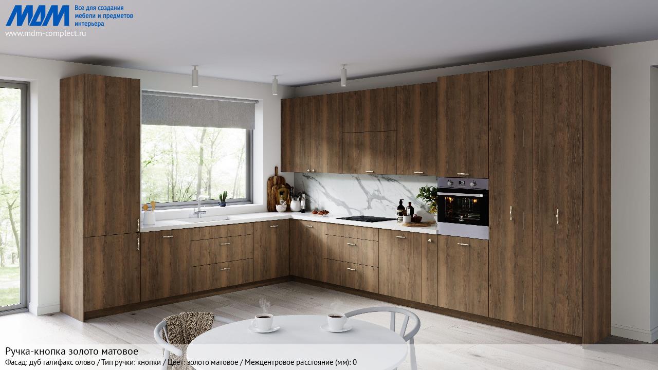 Ручка-кнопка золото матовое (KH.19.000.GA) в готовой кухне на различных фасадах