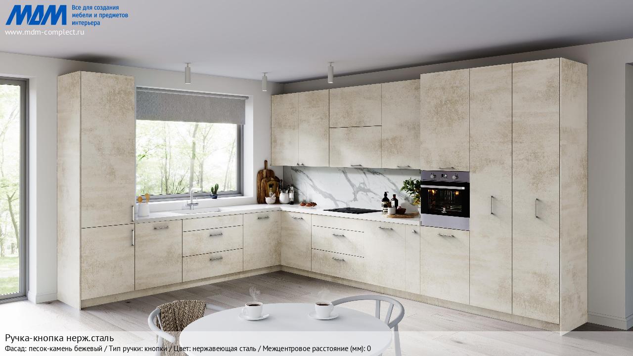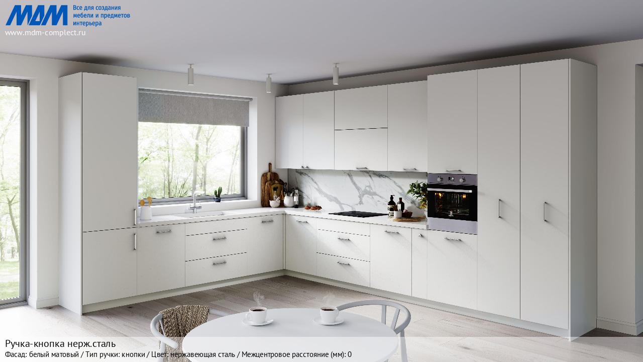 Мебельная Ручка-кнопка нерж.сталь на различных фасадах в кухонном интерьере в стиле классика, лофт, модерн.