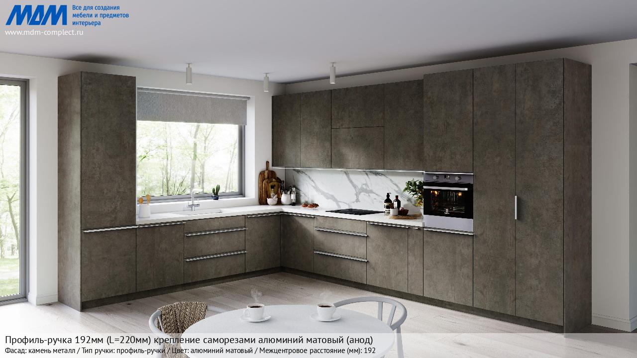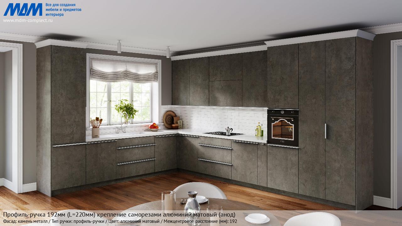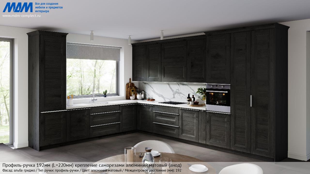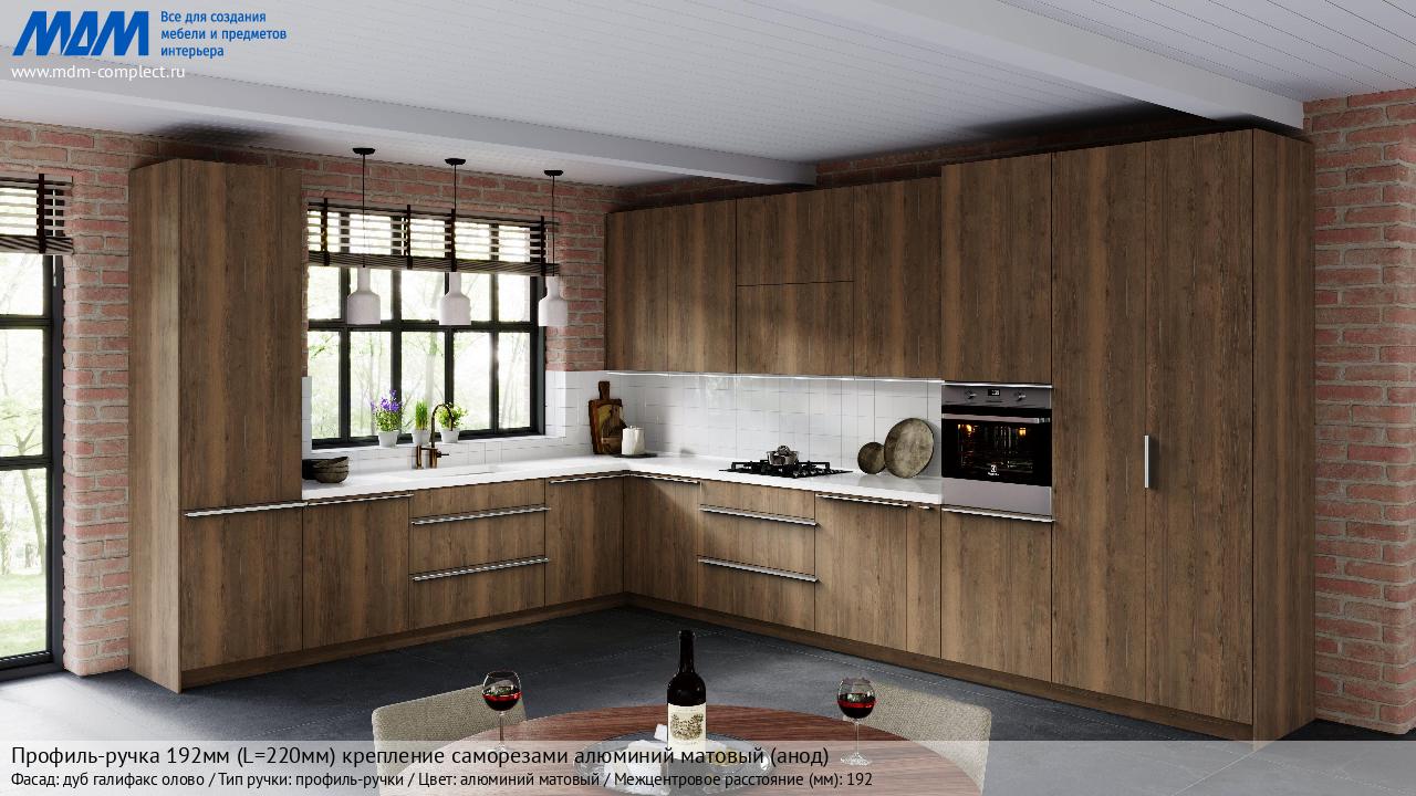 Мебельная Профиль-ручка 192мм (L=220мм) крепление саморезами алюминий матовый (анод) на различных фасадах в кухонном интерьере в стиле классика, лофт, модерн.