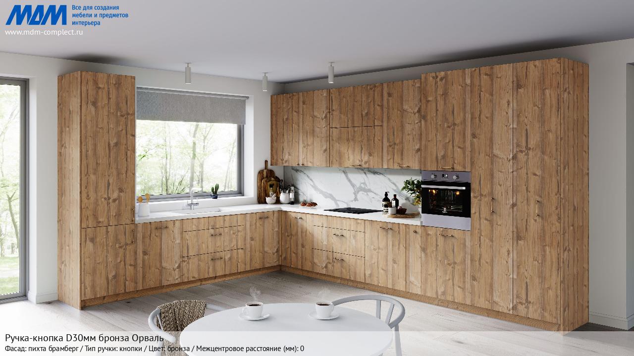 Мебельная Ручка-кнопка D30мм бронза Орваль на различных фасадах в кухонном интерьере в стиле классика, лофт, модерн.