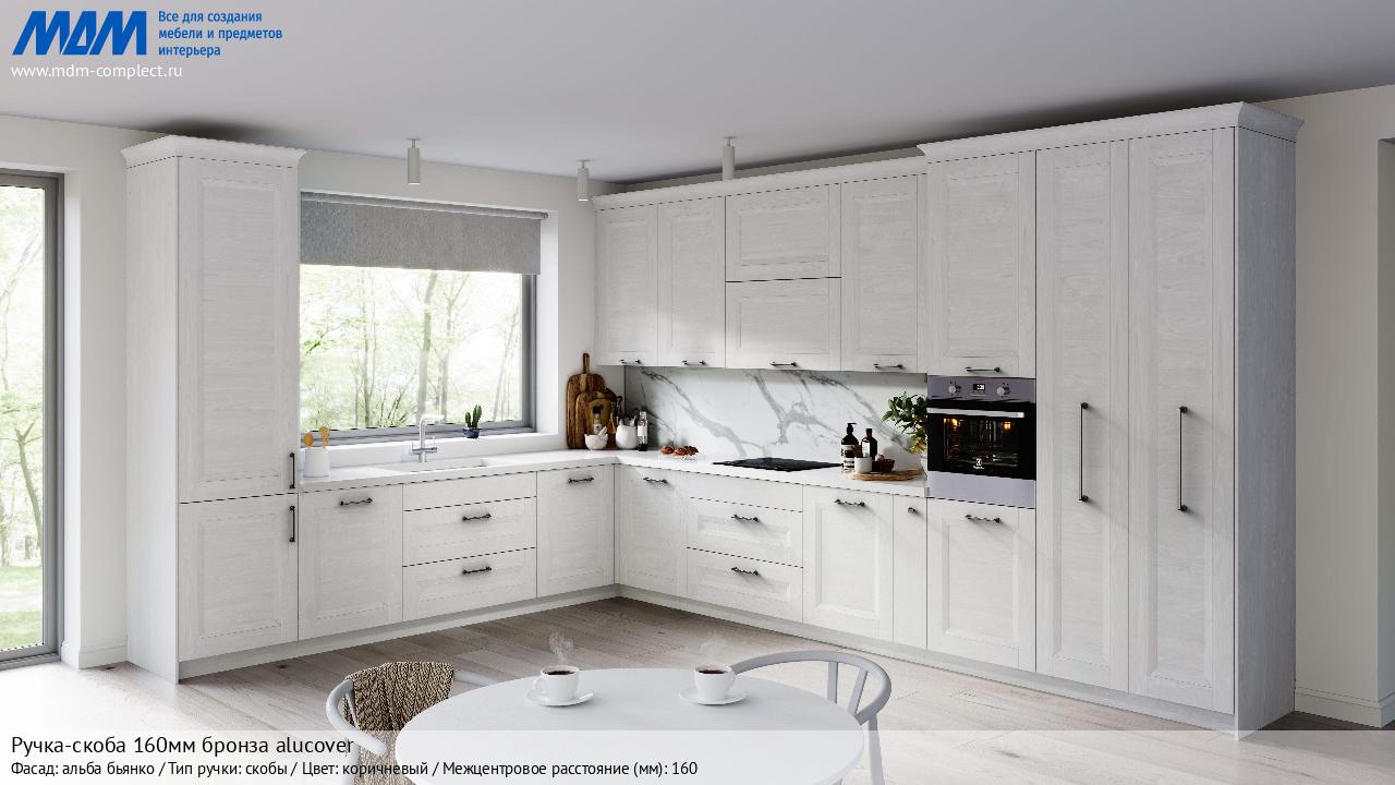 Мебельная Ручка-скоба 160мм бронза alucover на различных фасадах в кухонном интерьере в стиле классика, лофт, модерн.