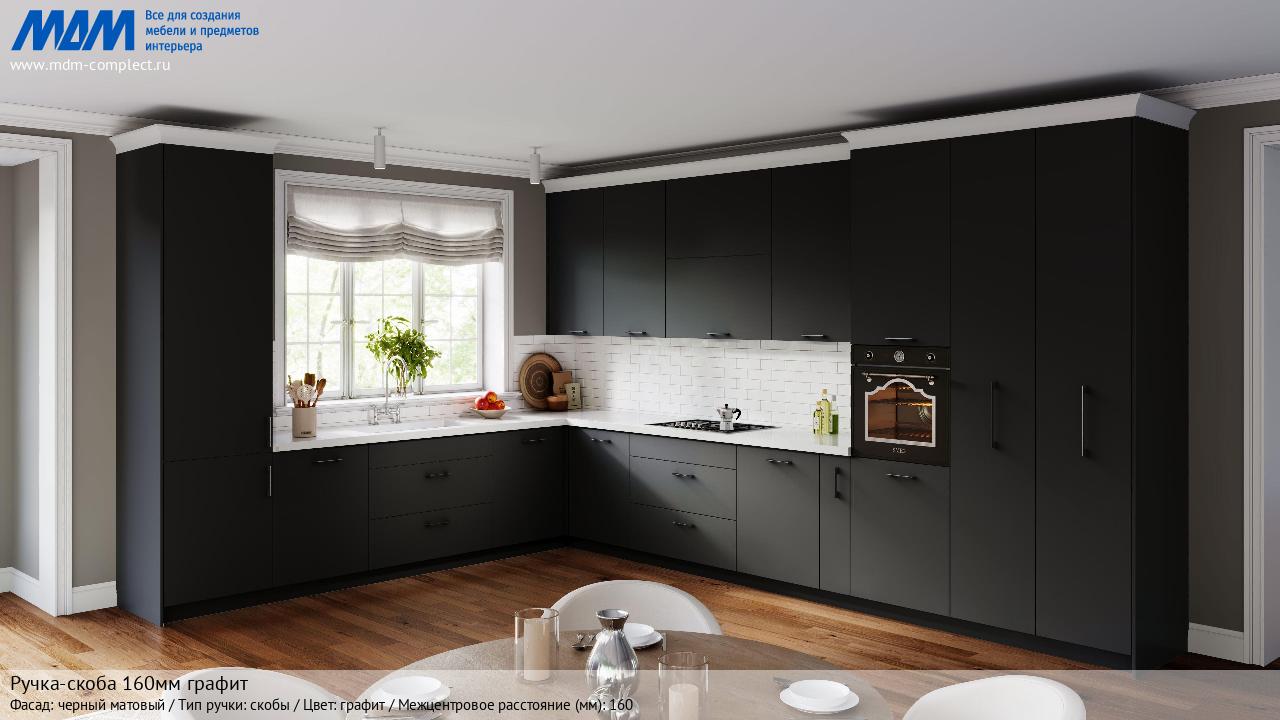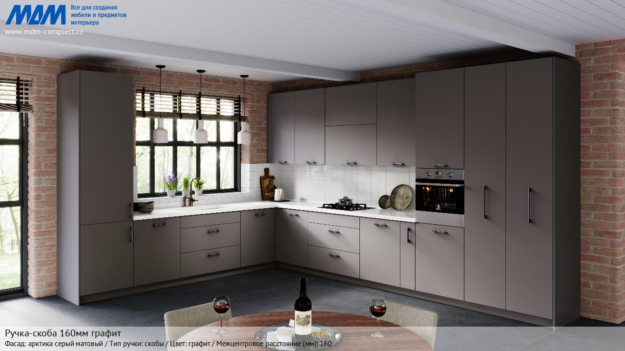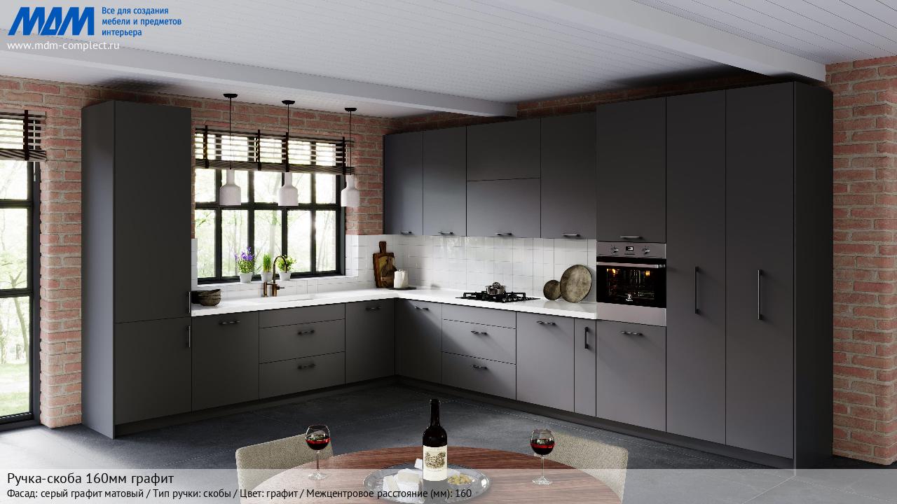 Ручка-скоба 160мм графит (WMN.001.160.00G9) в готовой кухне на различных фасадах