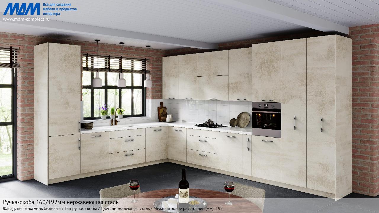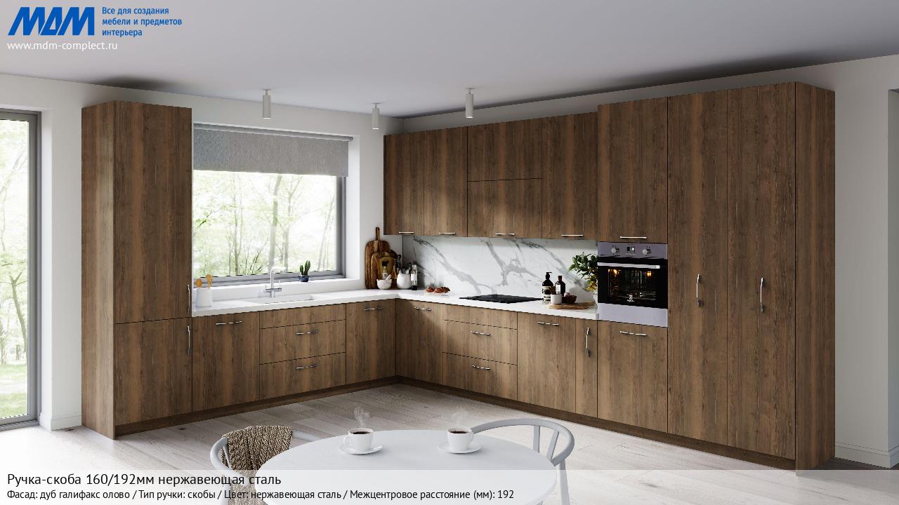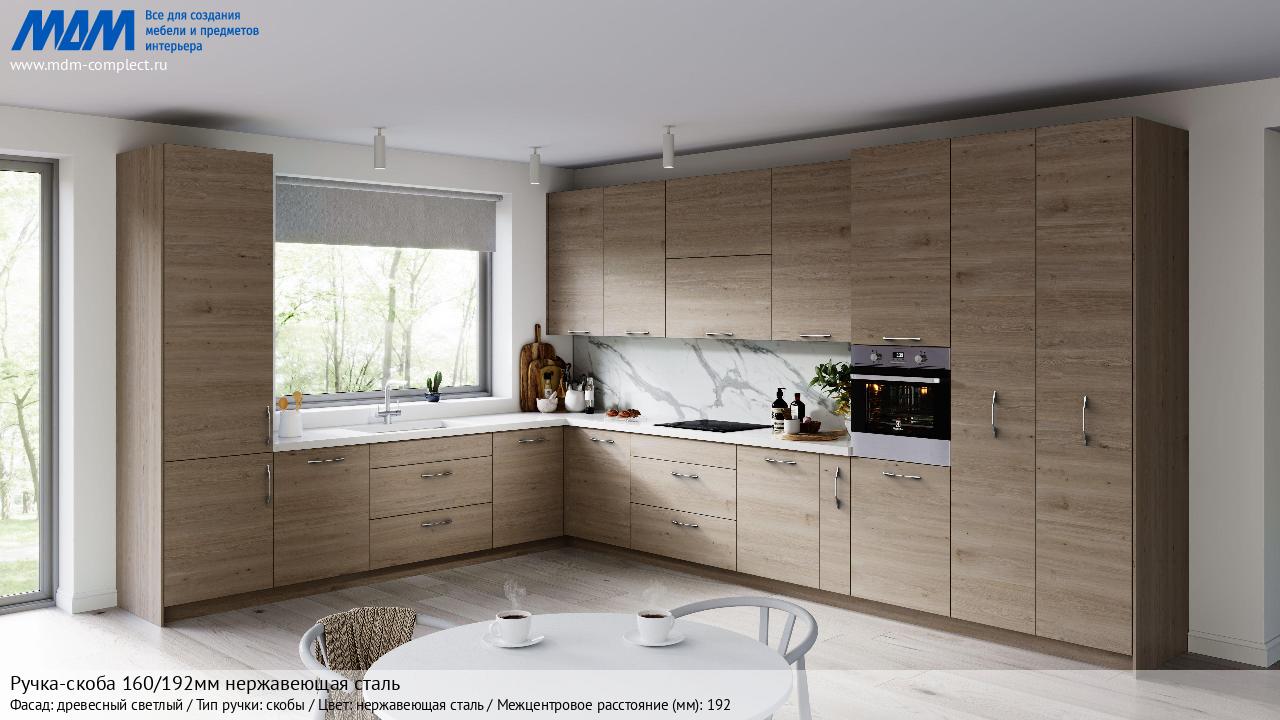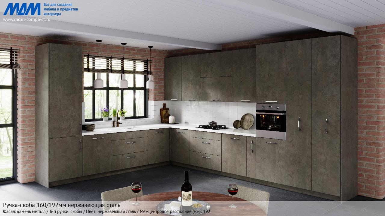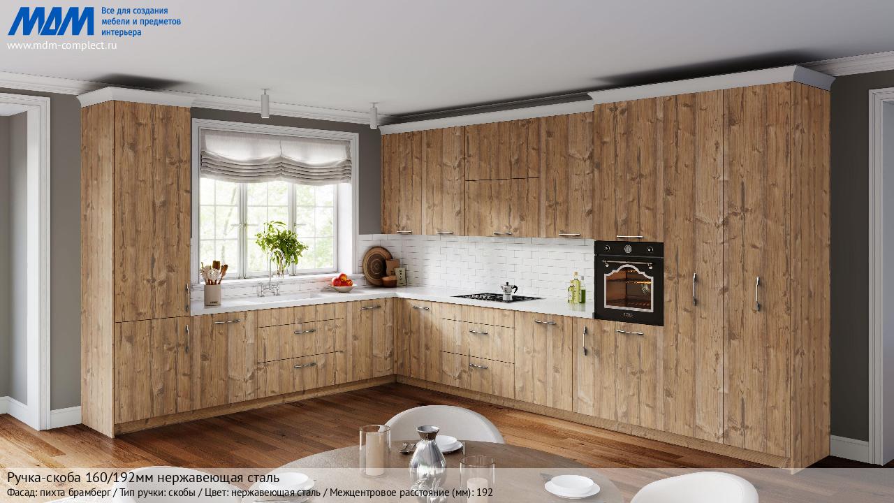 Мебельная Ручка-скоба 160/192мм нержавеющая сталь на различных фасадах в кухонном интерьере в стиле классика, лофт, модерн.