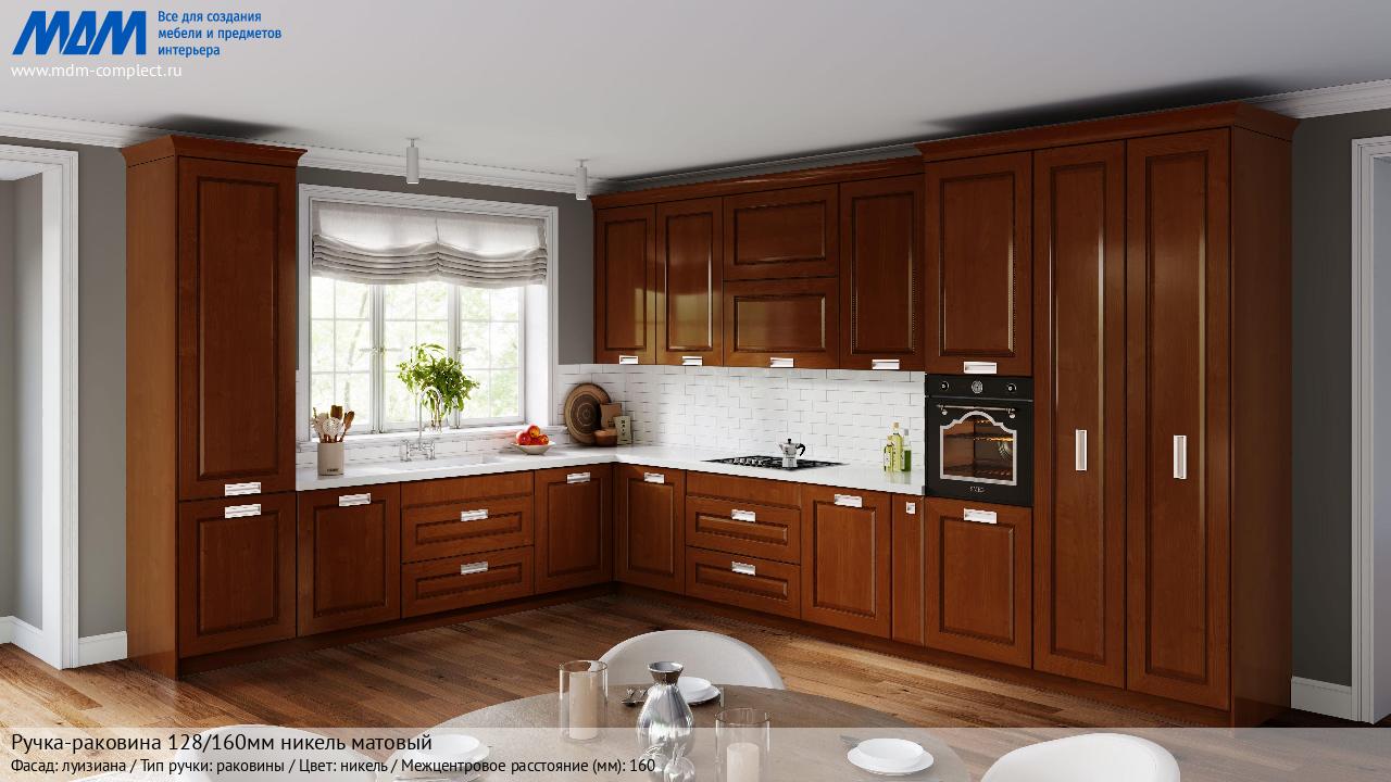 Мебельная Ручка-раковина 128/160мм никель матовый на различных фасадах в кухонном интерьере в стиле классика, лофт, модерн.