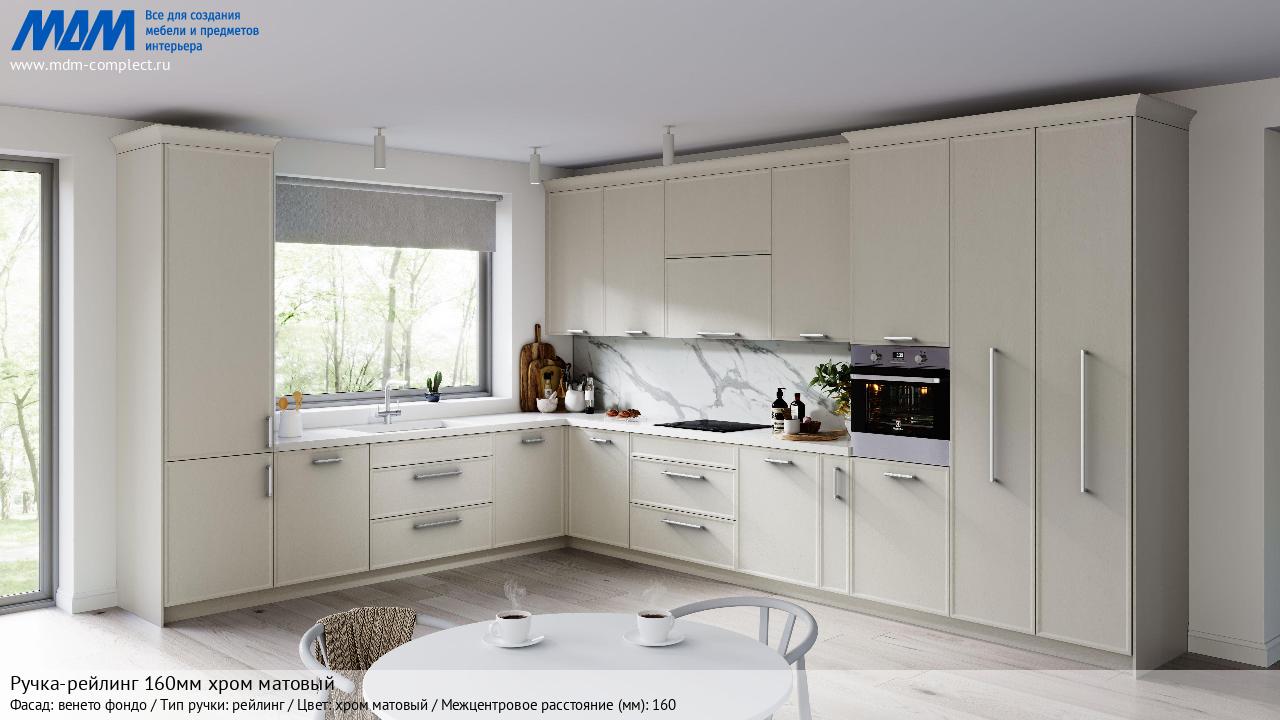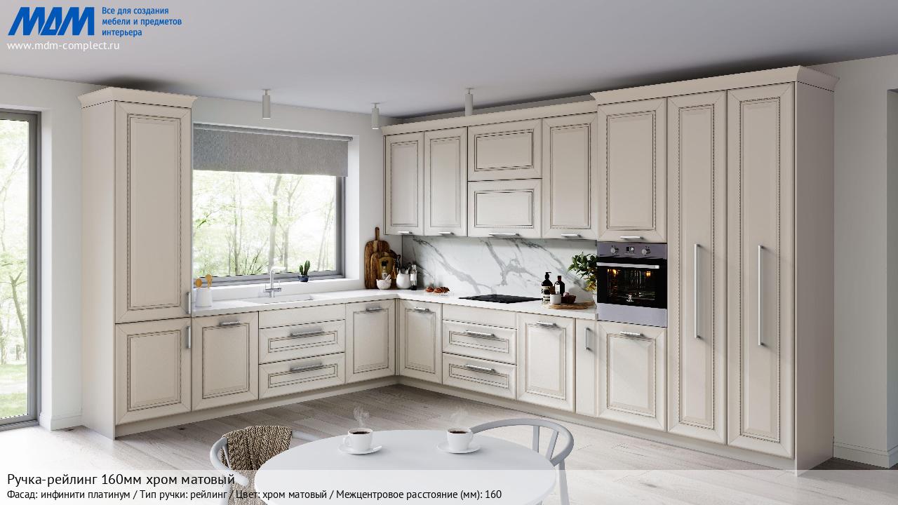Мебельная Ручка-рейлинг 160мм хром матовый на различных фасадах в кухонном интерьере в стиле классика, лофт, модерн.