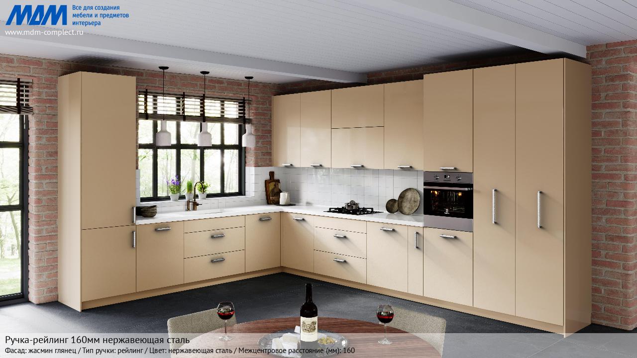 Мебельная Ручка-рейлинг 160мм нержавеющая сталь на различных фасадах в кухонном интерьере в стиле классика, лофт, модерн.