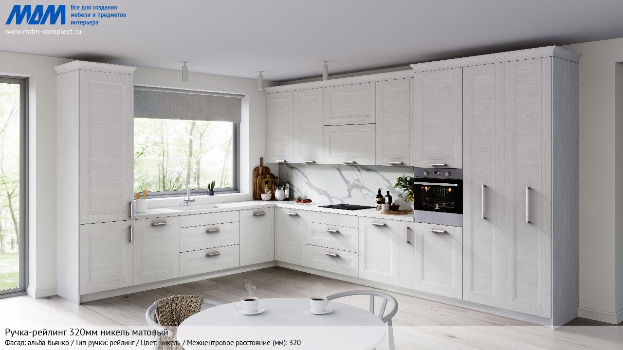 Мебельная Ручка-рейлинг 320мм никель матовый на различных фасадах в кухонном интерьере в стиле классика, лофт, модерн.
