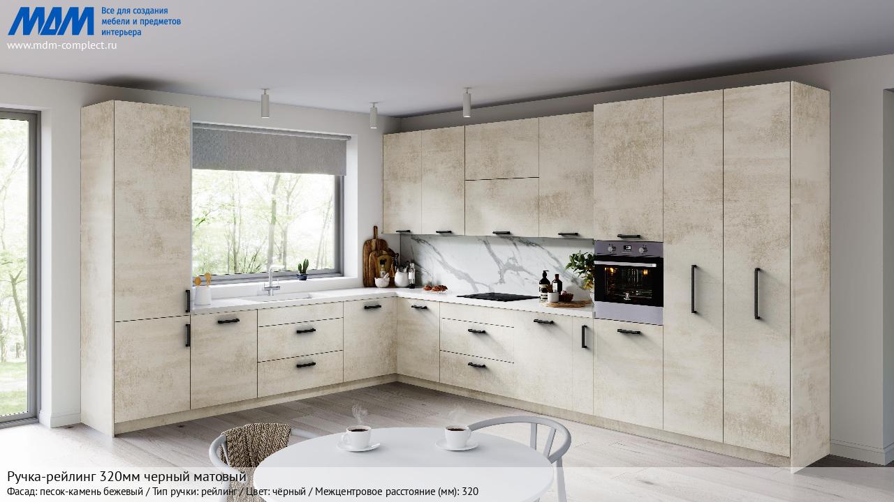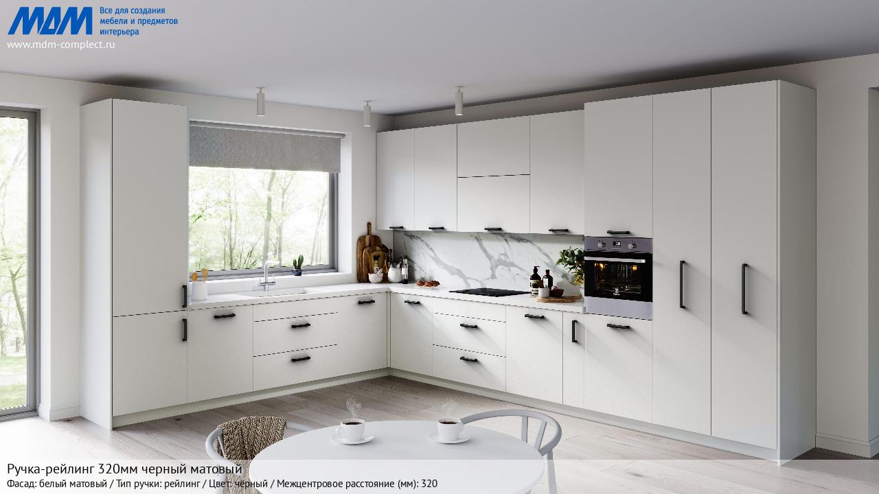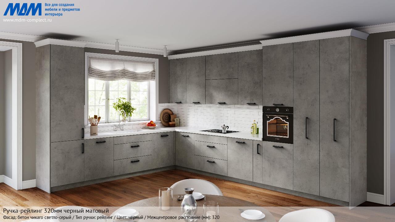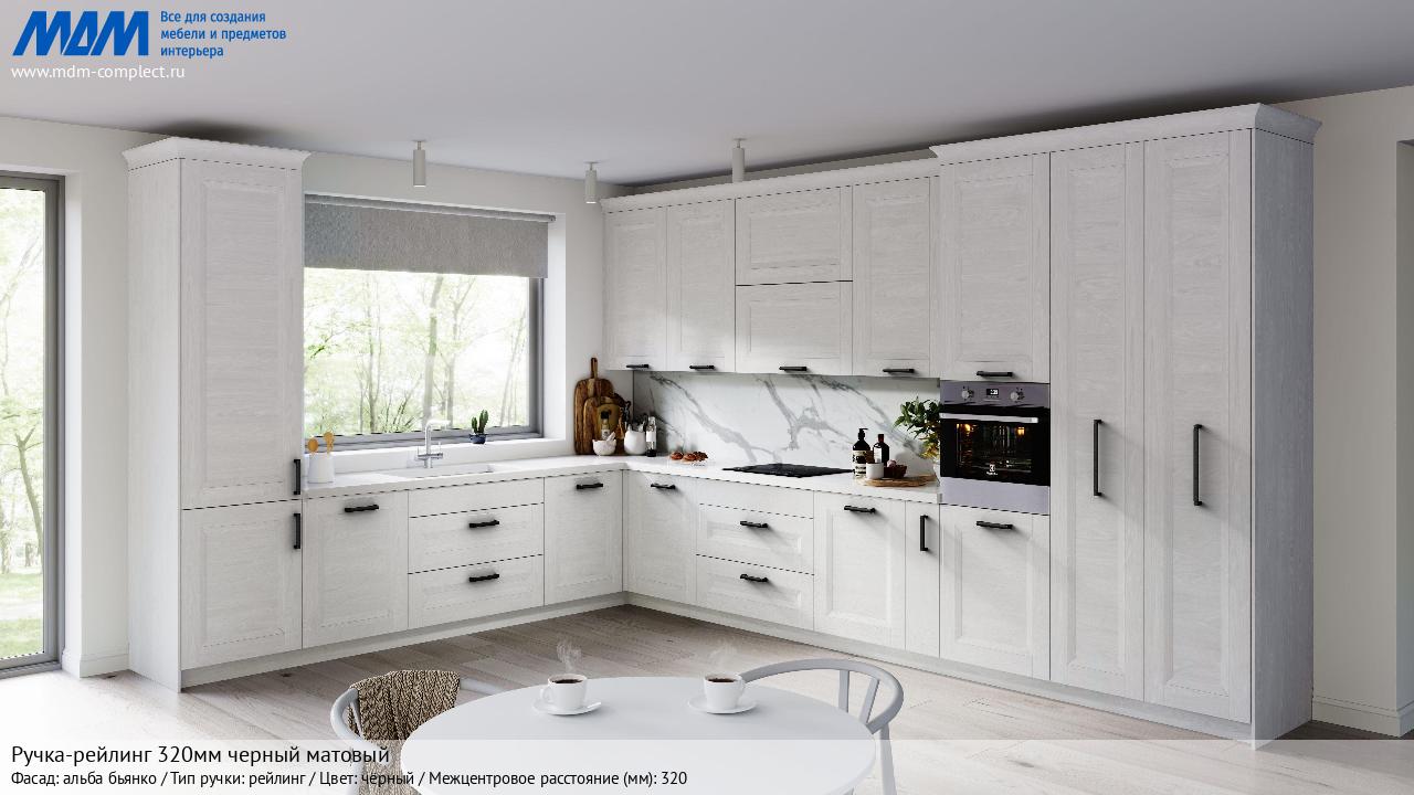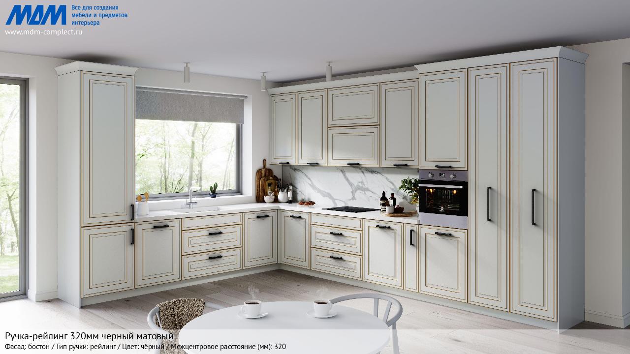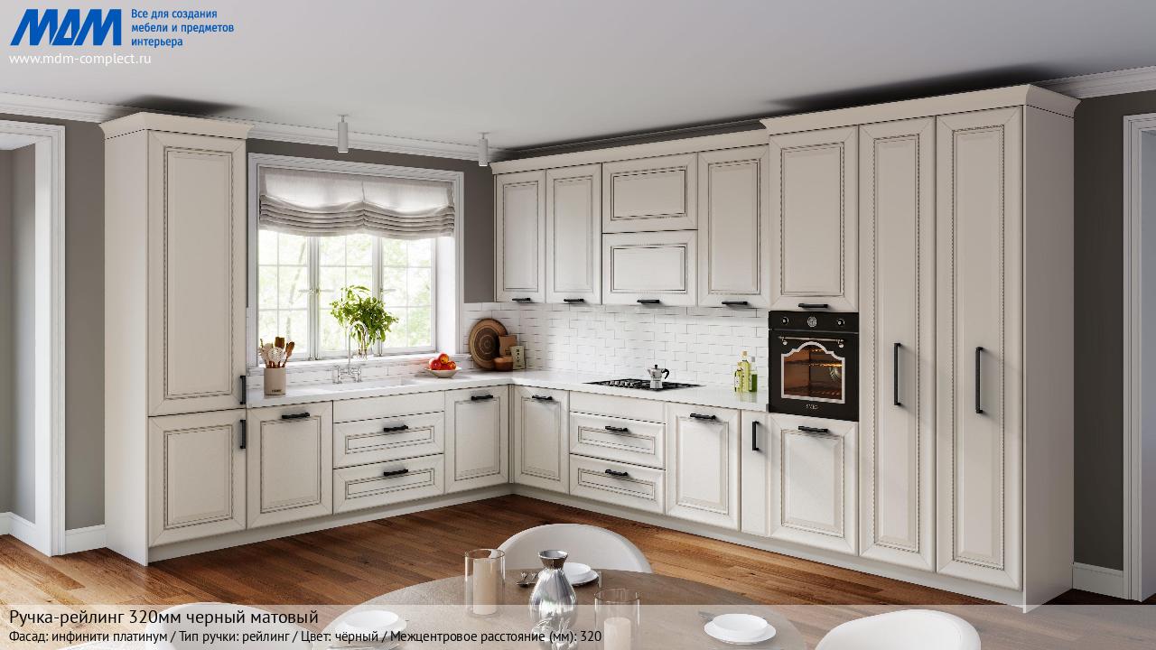Мебельная Ручка-рейлинг 320мм черный матовый на различных фасадах в кухонном интерьере в стиле классика, лофт, модерн.