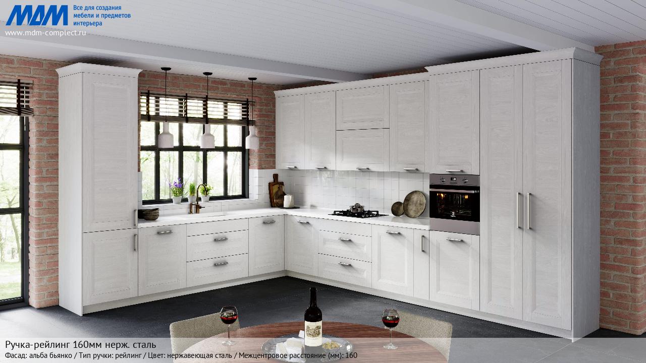Мебельная Ручка-рейлинг 160мм нерж. сталь на различных фасадах в кухонном интерьере в стиле классика, лофт, модерн.