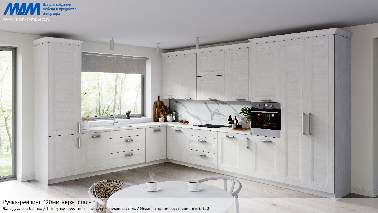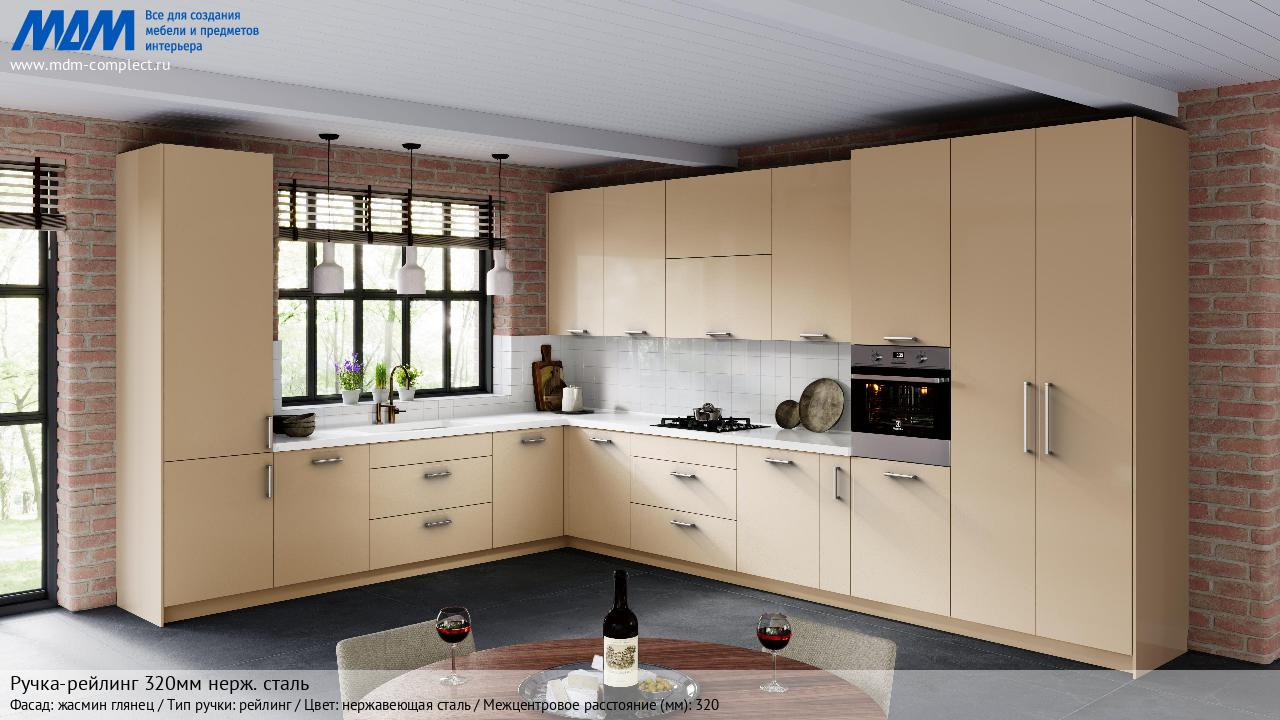 Мебельная Ручка-рейлинг 320мм нерж. сталь на различных фасадах в кухонном интерьере в стиле классика, лофт, модерн.