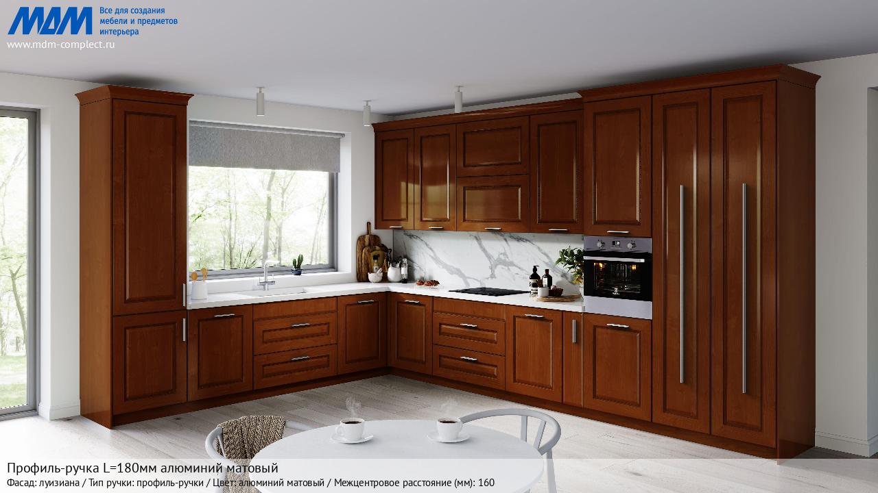 Мебельная Профиль-ручка L=180мм алюминий матовый на различных фасадах в кухонном интерьере в стиле классика, лофт, модерн.