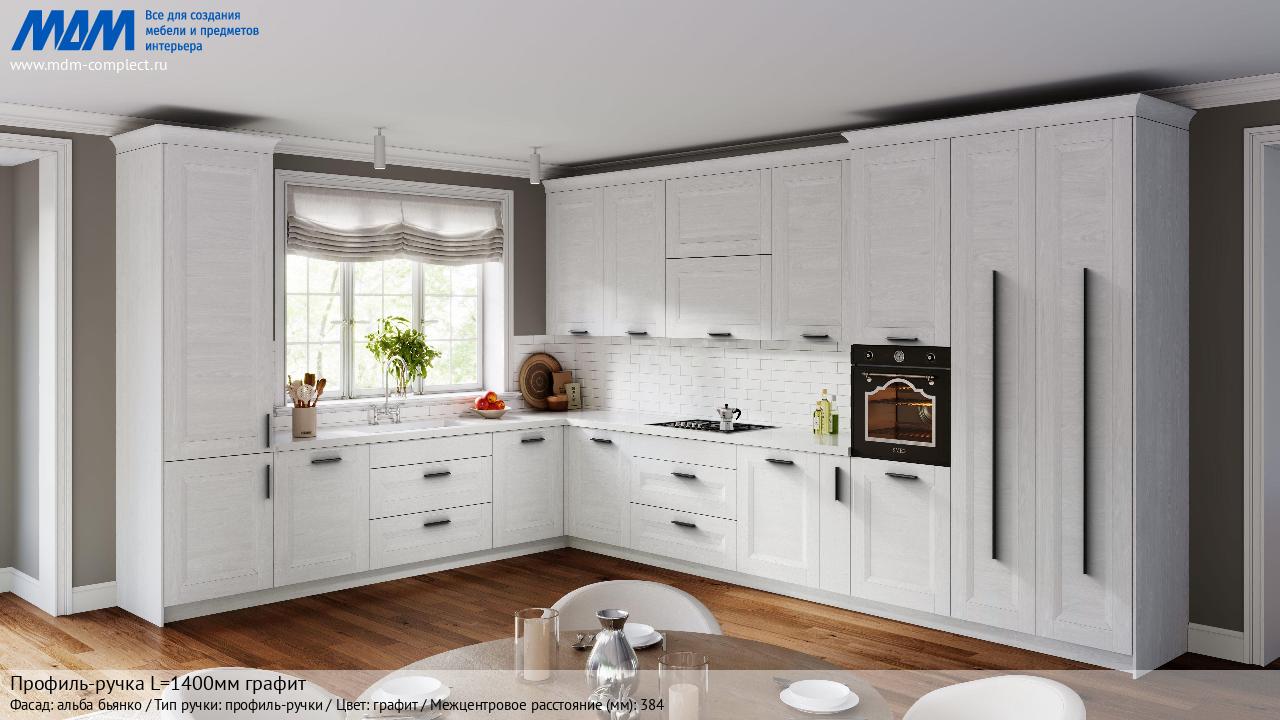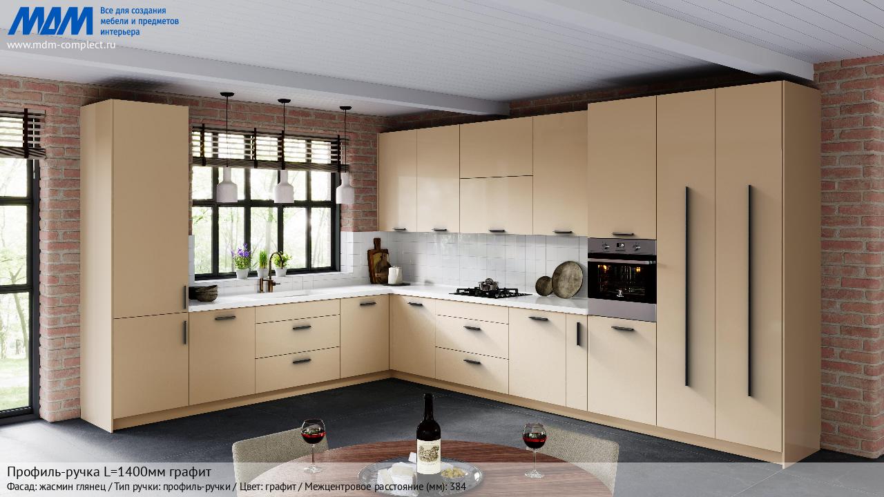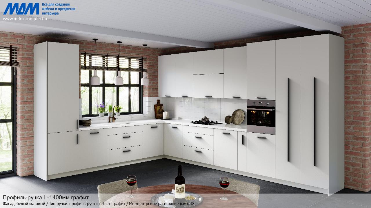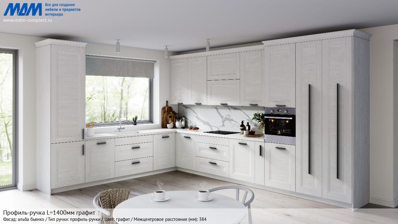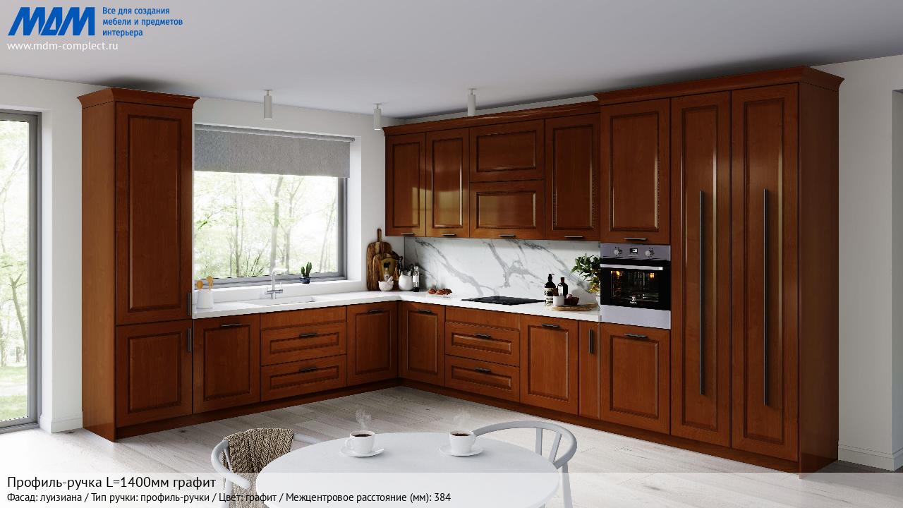 Мебельная Профиль-ручка L=1400мм графит на различных фасадах в кухонном интерьере в стиле классика, лофт, модерн.