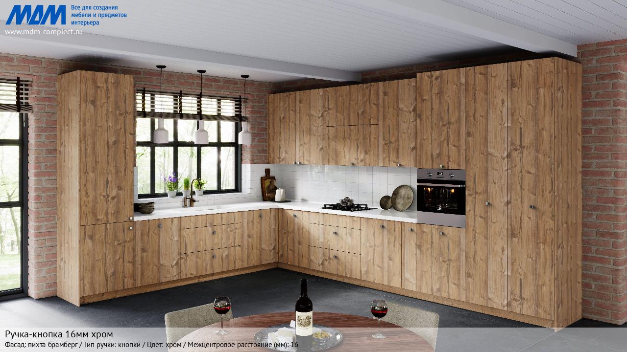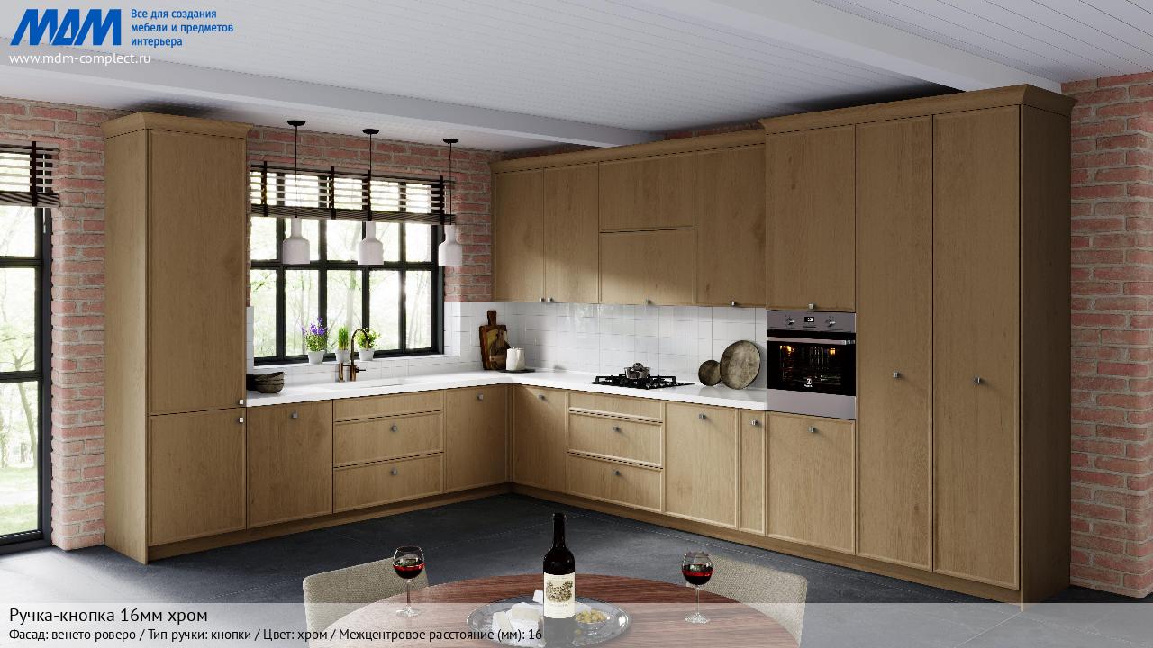 Мебельная Ручка-кнопка 16мм хром на различных фасадах в кухонном интерьере в стиле классика, лофт, модерн.