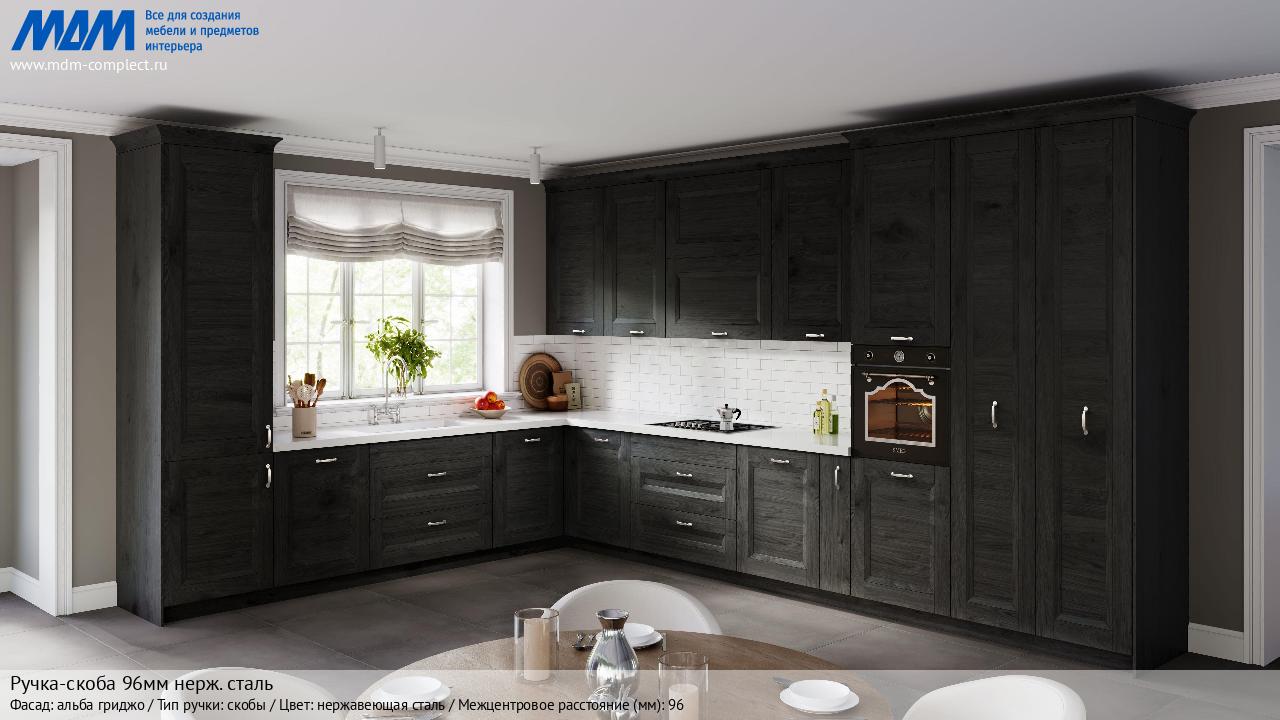 Мебельная Ручка-скоба 96мм нерж. сталь на различных фасадах в кухонном интерьере в стиле классика, лофт, модерн.
