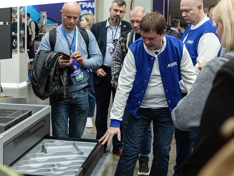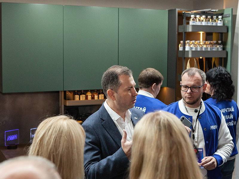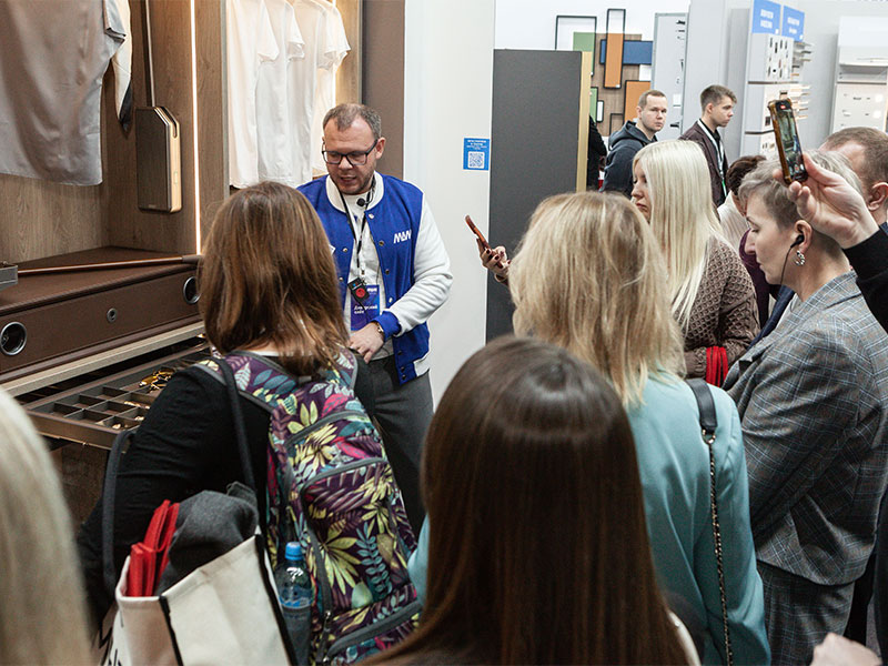 День начался с посещения главного отраслевого события года — выставки «МЕБЕЛЬ-2025» в МВЦ «Крокус Экспо», в котором после перерыва наша компания вновь принимает участие. Для дилеров была проведена эксклюзивная экскурсия по стенду МДМ, в рамках которой были презентованы новинки ассортимента и состоялось профессиональное обсуждение актуальных тенденций мебельного рынка.