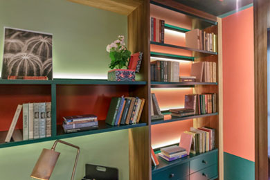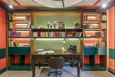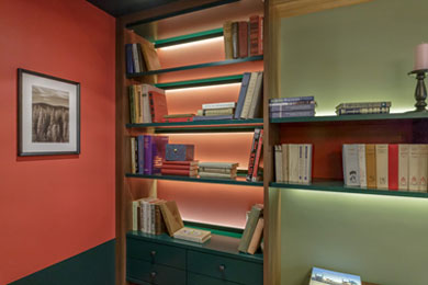 В зоне библиотеки для подсветки полок была использована светодиодная лента PULSE, создающая эффект парения.